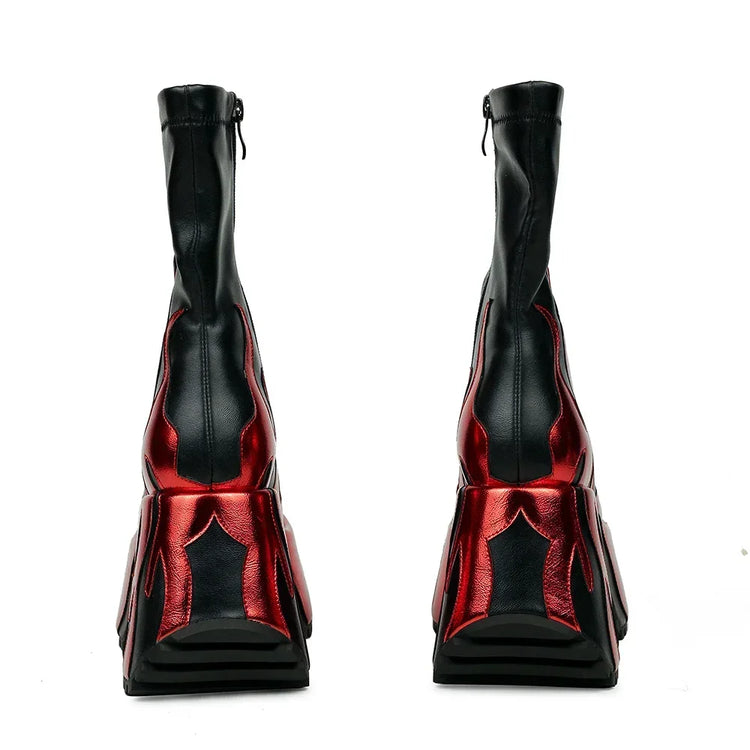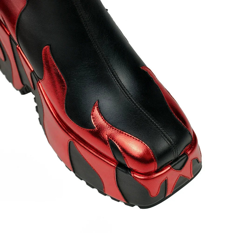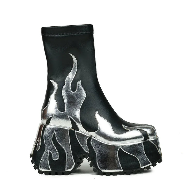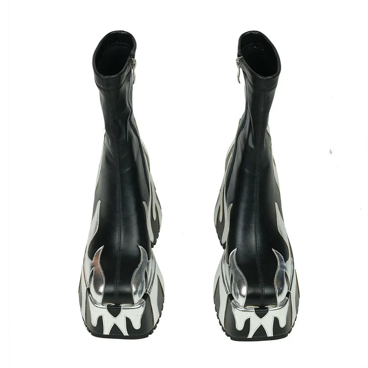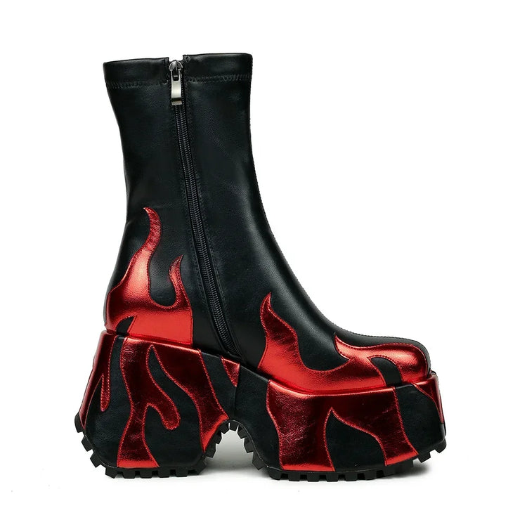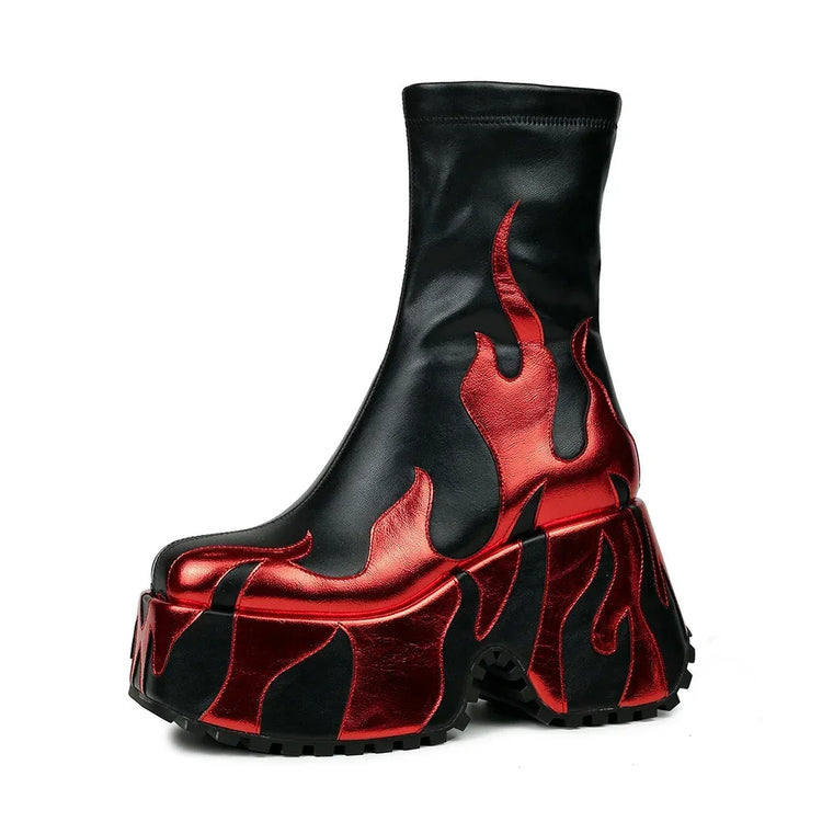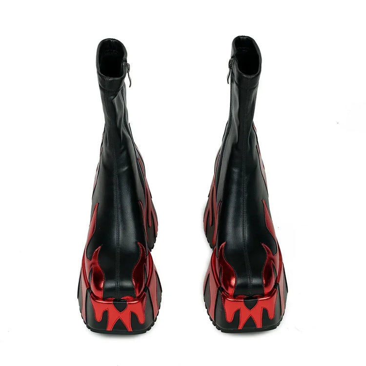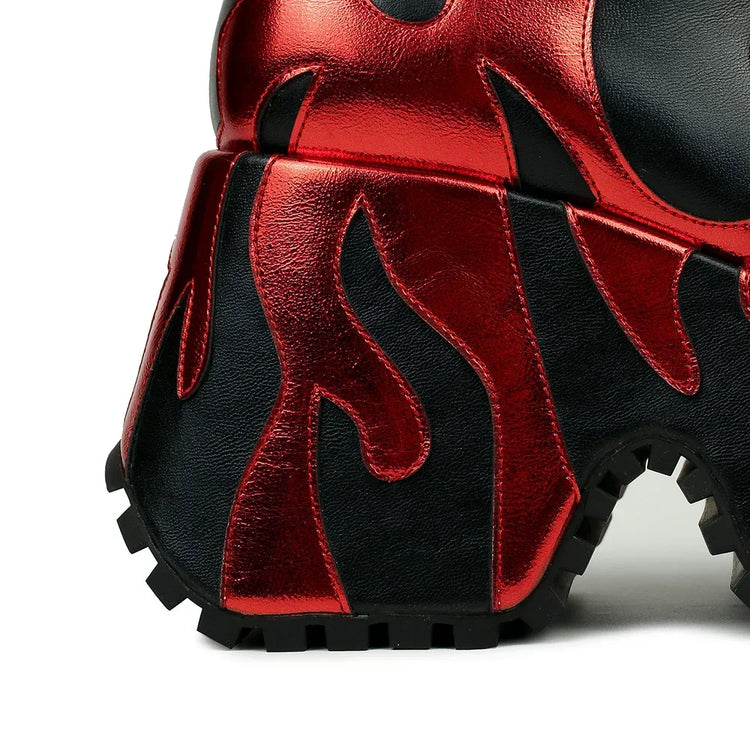 These boots are hotter than Hades himself, with flames licking at your heels, forged in the depths of the underworld. They're perfect for setting the dance floor ablaze (literally, if you're brave enough) or just adding some fiery flair to your everyday doom and gloom. Side effects may include: spontaneous combustion of boring outfits and an irresistible urge to blast heavy metal on repeat.