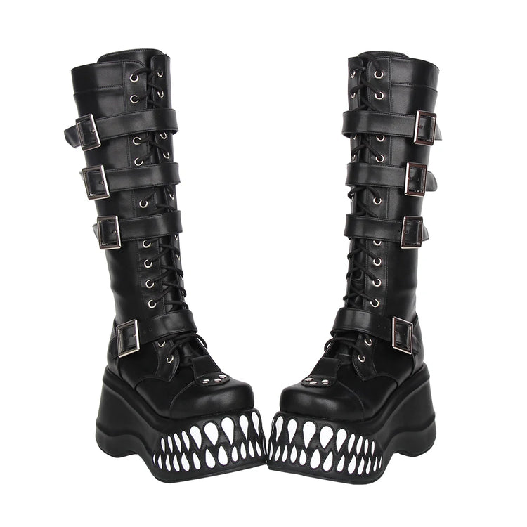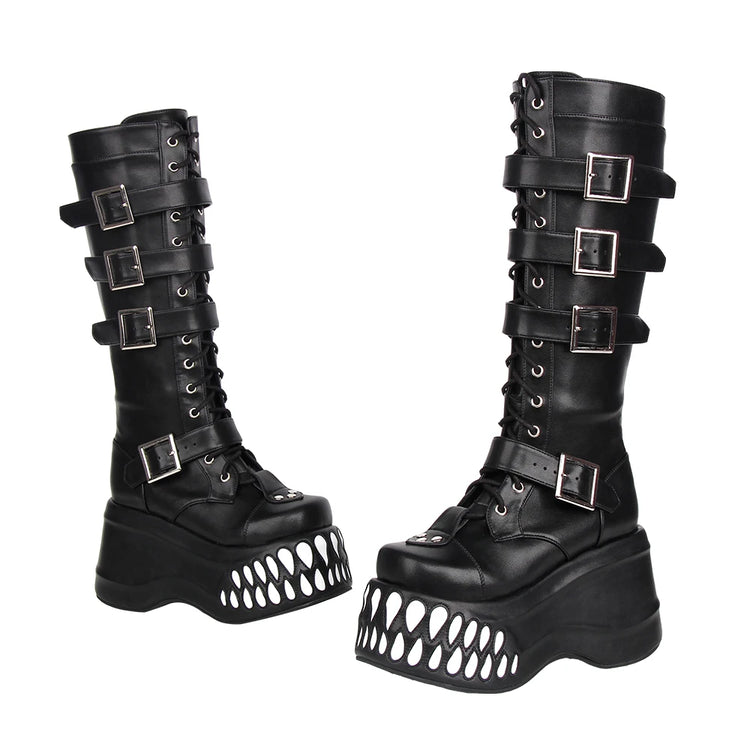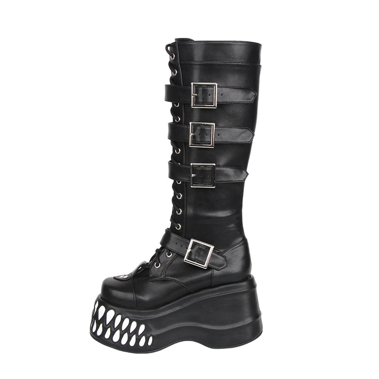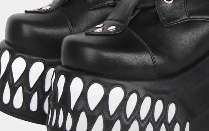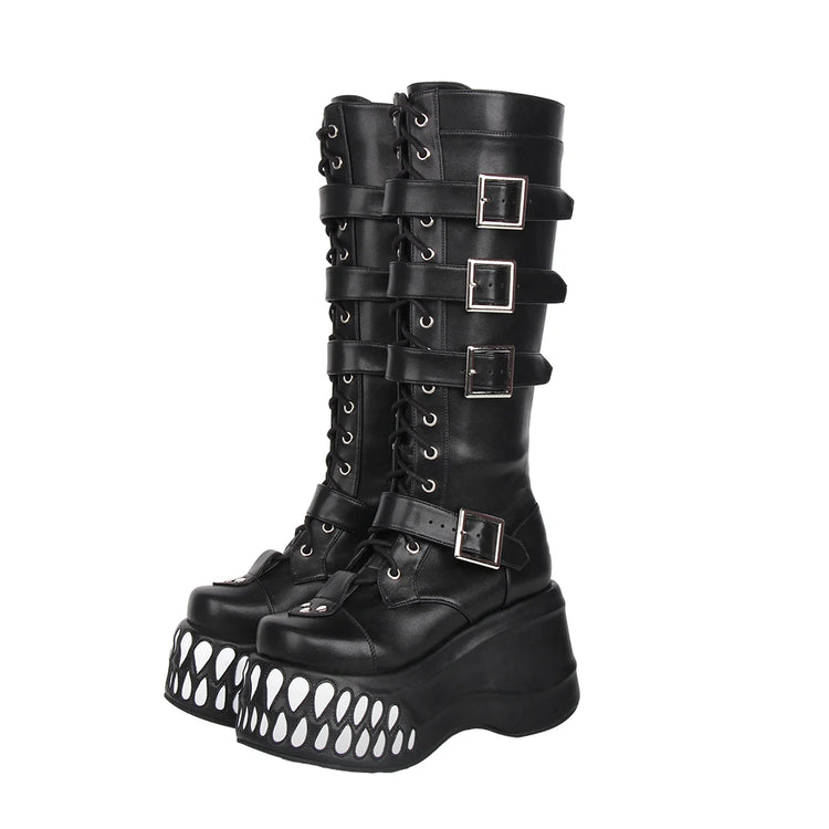 Sink your style into our 'Little Chomp' Platforms, the knee-high boots that serve up a delicious dose of spooky cuteness from the ground up. Embrace the dark side with a wink and let your soles do the little bitin'.